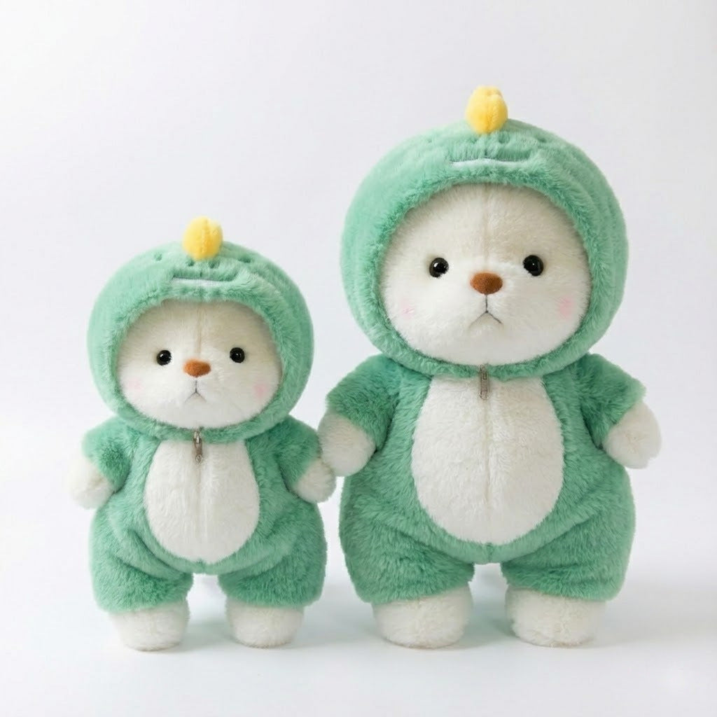 ¿Quién dijo que los dinosaurios se extinguieron? Mallow Rex ha llegado para demostrar que es el rey... pero de las siestas. Con su suave traje verde pastel y una capucha con crestas que puedes quitar y poner, este pequeño prehistórico prefiere los abrazos a los rugidos. El compañero perfecto para aventuras en el sofá